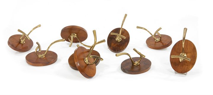 CACCIA DOMINIONI LUIGI Nove attaccapanni in ottone su base ovale in legno di...