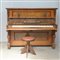 Pianoforte verticale marcato Francke in noce e radica di noce, elementi torniti e intagliati e portacandele, unito a sgabello