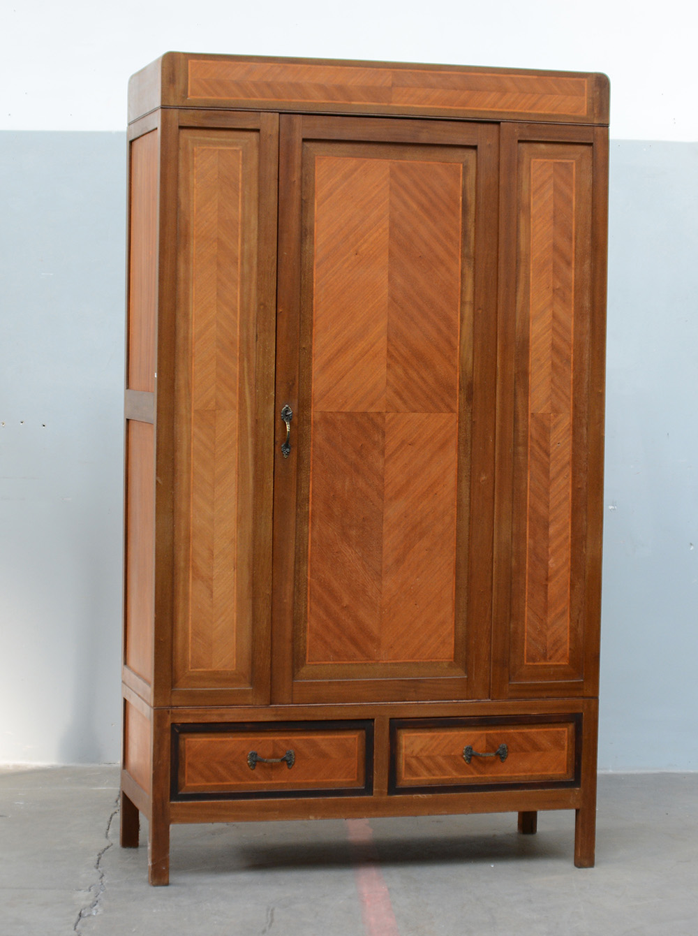 Armadio ad un battente e un cassetto impiallacciato e filettato (cm 120x210x50) (difetti)