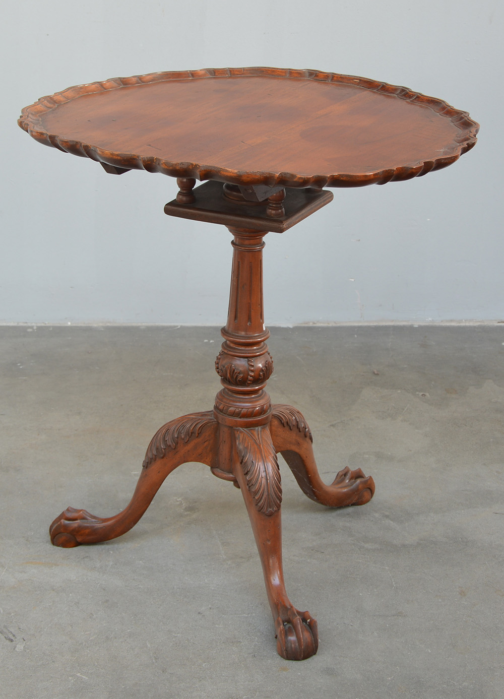 Lotto 2372 | Tavolino tondo tripode con gambe scolpite a zampa ferina e piano a vela (cm...