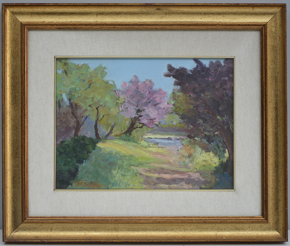 I. R. Salardi "Scorcio di paesaggio" olio su tela (cm 30x40) firmato in basso a sinistra, firmato e datato 1988 al verso, in cornice