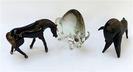 Manifattura di Murano Lotto composto da tre animali in vetro di Murano, uno...