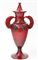 Manifattura di Murano Urna con coperchio biansata e con applicazioni a caldo a forma di erme leonine in vetro soffiato trasparente rosso. Secolo XX. (h cm 47) (difetti) -EN Manifattura di Murano Urna con coperchio biansata e con applicazioni a caldo a forma di erme leonine in vetro soffiato trasparente rosso. Secolo XX. (h cm 47) (difetti)