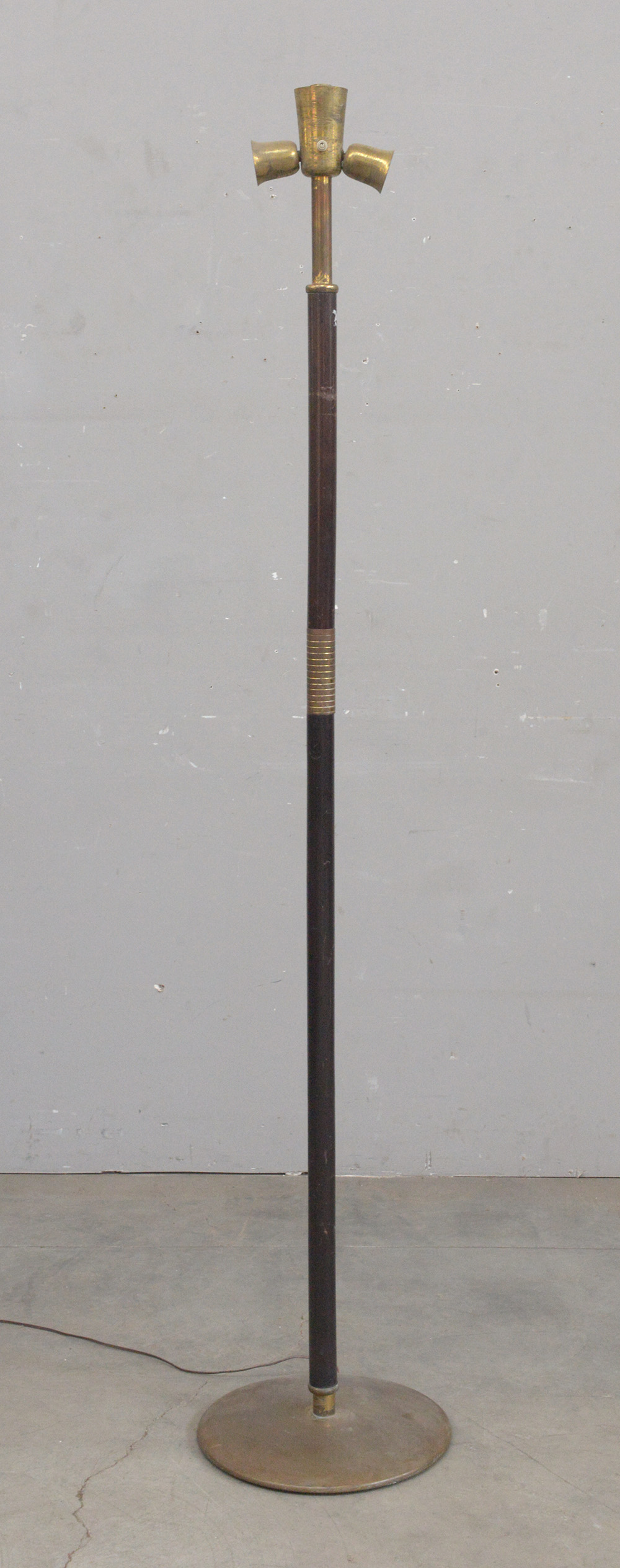 Lampada da terra in mogano e ottone. Italia, anni '40. (difetti)