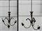 Coppia di lampade a sospensione a tre luci in ottone brunito. Italia, anni...