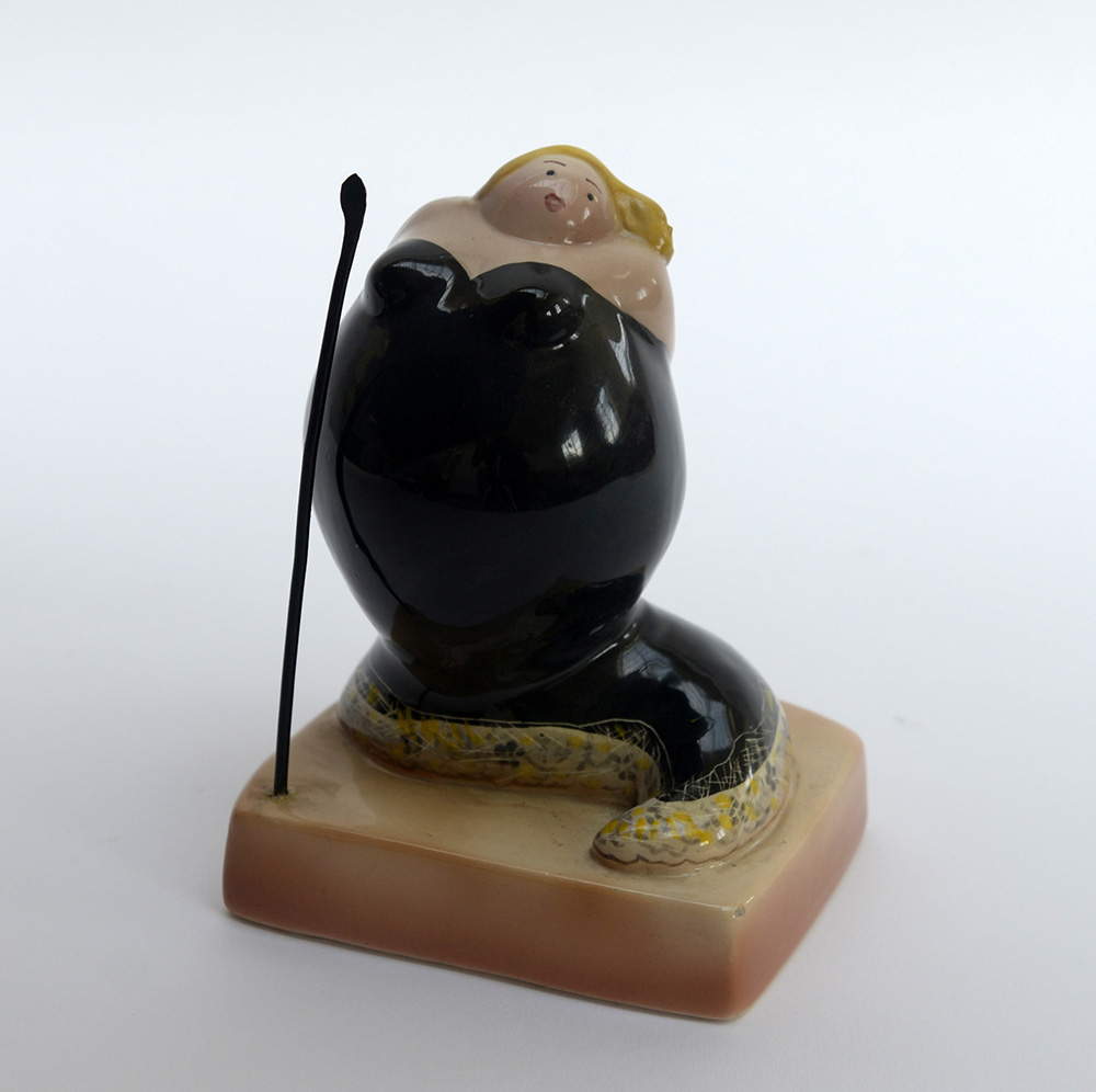 Giovanni Ronzan "Cantante lirica EIAR" Piccola scultura caricaturale in ceramica formata a colaggio e smaltata in policromia sotto vetrina. Torino, anni '30. Firmata sotto la base "Originale Ronzan". (difetti e restauri) -EN "Cantante lirica EIAR" Piccola scultura caricaturale in ceramica formata a colaggio e smaltata in policromia sotto vetrina. Torino, anni '30. Firmata sotto la base "Originale Ronzan". (difetti e restauri)
