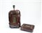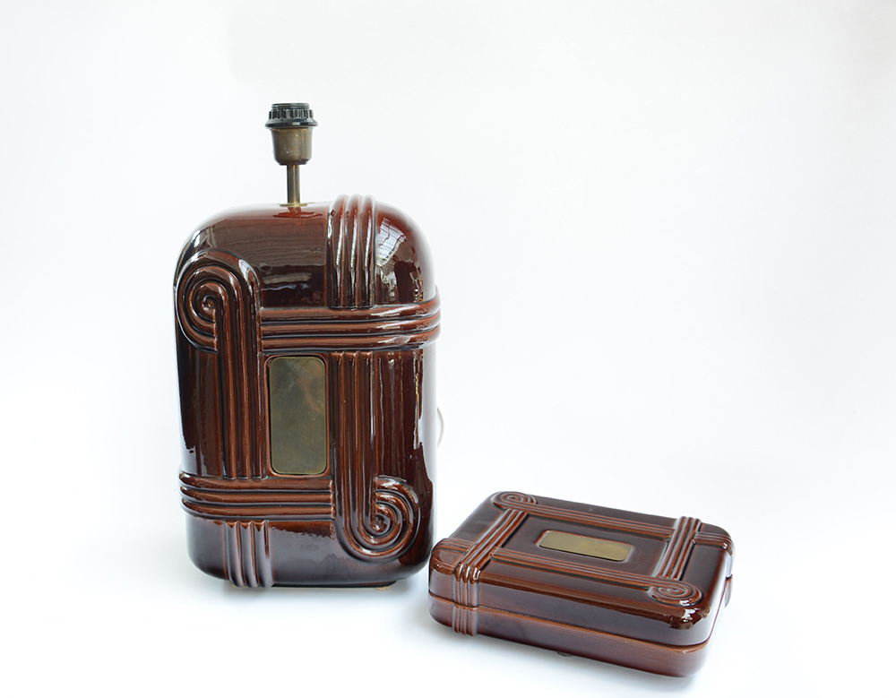 Tommaso Barbi Set da tavolo composto da una lampada e una scatola in ceramica smaltata in bruno. Italia, 1970ca. -EN Set da tavolo composto da una lampada e una scatola in ceramica smaltata in bruno. Italia, 1970ca.