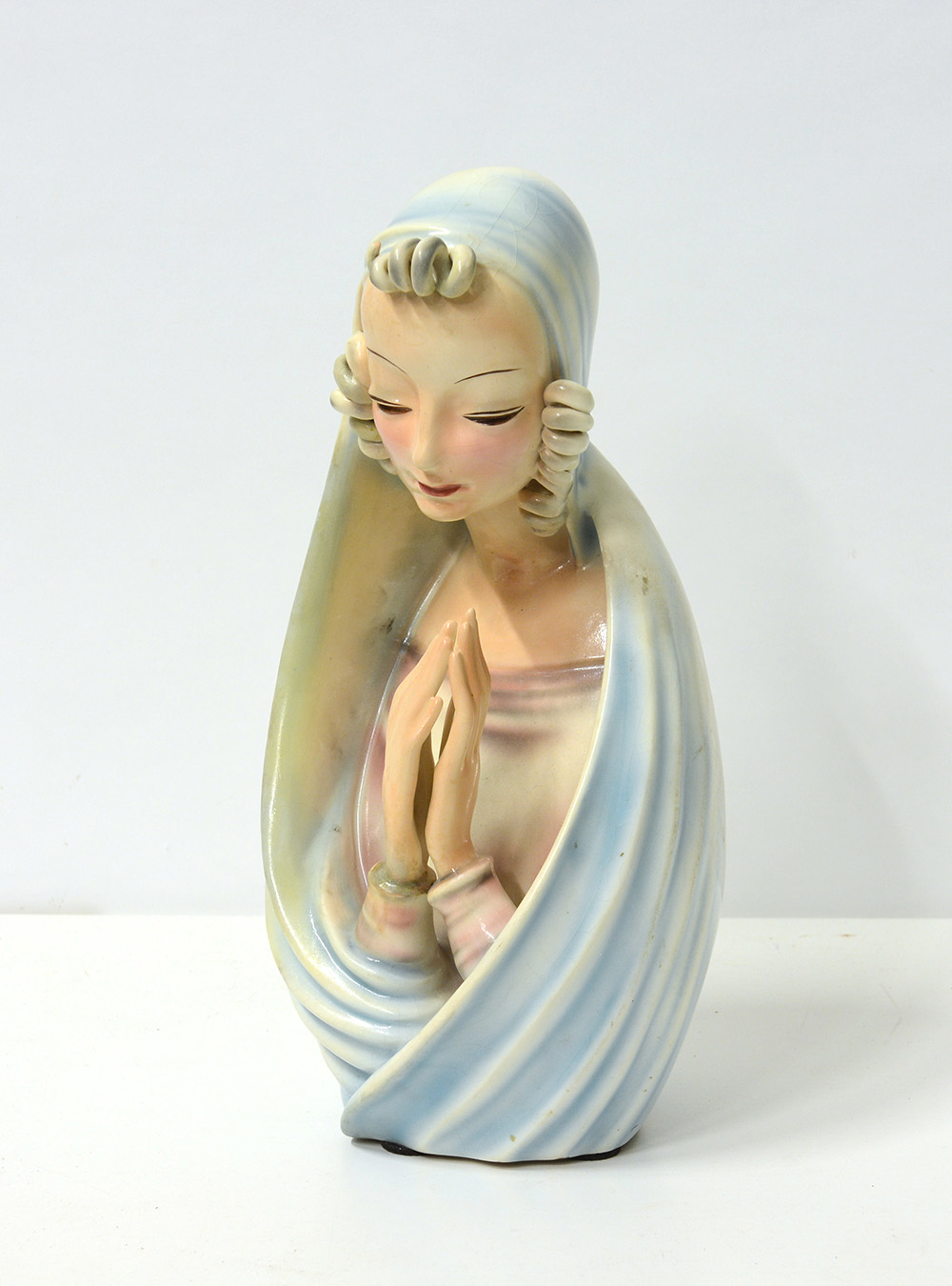 Goldscheider "Madonna" Scultura in ceramica formata a colaggio e smaltata in policromia sotto vetrina. Austria, anni '30. Marcata in neso sotto la base e recante numerali incussi. (lievi difetti e restauri) -EN "Madonna" Scultura in ceramica formata a colaggio e smaltata in policromia sotto vetrina. Austria, anni '30. Marcata in neso sotto la base e recante numerali incussi. (lievi difetti e restauri)