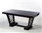 Tavolo in stile Novecento in legno ebanizzato con gambe a slitta decorate da...