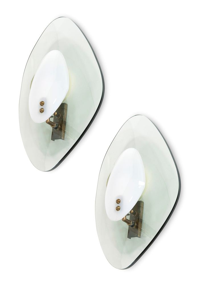 Lotto 279 | CRISTAL ART Coppia di appliques in vetro curvato fumé con diffusore in vetro...