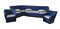 Salotto imbottito rivestito in velluto blu composto da divano e due poltrone....