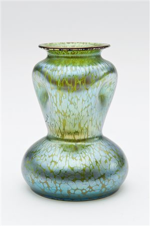 Manifattura centro europea Piccolo vaso in vetro iridato. Prima metà secolo XX. (h cm 16,5) -EN Manifattura centro europea Piccolo vaso in vetro iridato. Prima metà secolo XX. (h cm 16,5)