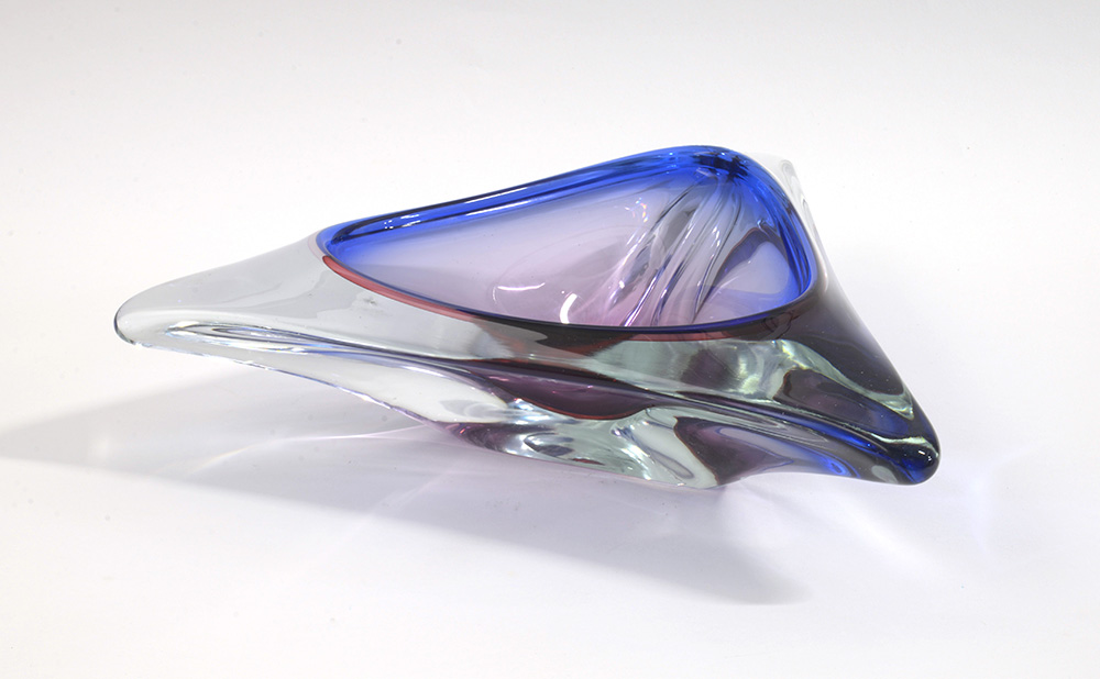 Seguso (Attribuito) Centrotavola di forma triangolare in vetro sommerso...