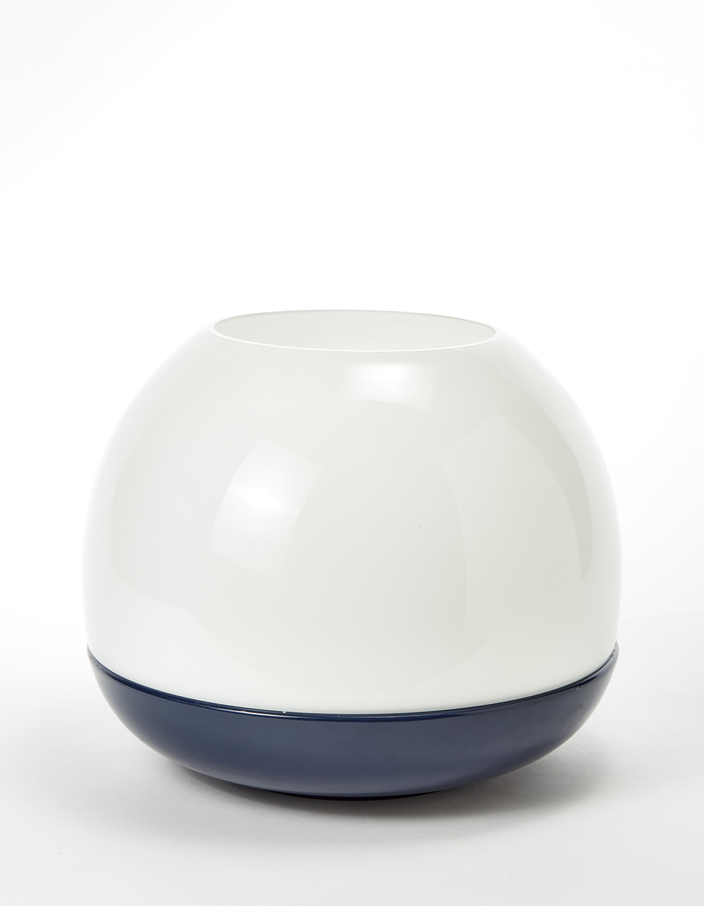 Leonardo Ferrari e Franco Mazzucchelli-Tartaglino Lampada da tavolo modello "Platea". Produzione Artemide, Milano, 1965. Base in alluminio laccato blu e bianco e globo diffusore in vetro incamiciato lattimo. (h cm 38; d cm 45) (lievi difetti) Bibliografia G. Gramigna, Repertorio del design italiano 1950-2000 per l'arredamento domestico, vol 1, Allemandi, Torino 2003, p. 120 -EN Table lamp model "Platea". Produced by Artemide, Milan, 1965. Blue and white laquered aluminium base and incamiciato glass light diffuser globe. (h 38 cm.; d 45 cm.) (slight defects) Literature G. Gramigna, Repertorio del design italiano 1950-2000 per l'arredamento domestico, vol 1, Allemandi, Torino 2003, p. 120