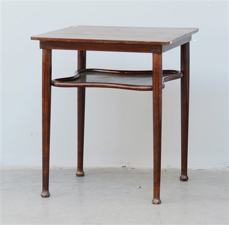 Mundus & J. Kohn Tavolino in legno di faggio massello e curvato al vapore. Polonia, inizio secolo XX. (cm 66x76,5x66) (difetti) -EN Tavolino in legno di faggio massello e curvato al vapore. Polonia, inizio secolo XX. (cm 66x76,5x66) (difetti)