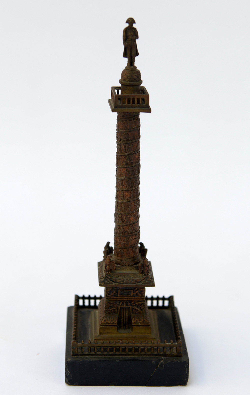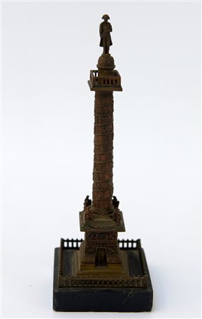 Riproduzione in bronzo della colonna Vendôme Napoleonica. Francia, Secondo Impero, metà secolo XIX (l. cm 26,5) (difetti) -EN Bronze reproduction of the Vendôme Napoleonica column. France, Second Empire, metà secolo XIX.