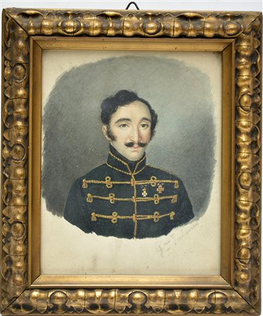 Piccolo ritratto ad acquarello di un ufficiale degli Ussari austriaci....