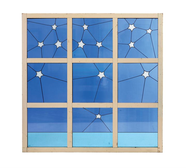 Nove formelle in vetrocamera isolante con all'interno vetrate a piombo policrome raffiguranti un cielo stellato.
