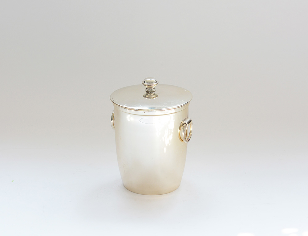 Porta ghiaccio in argento biansato con coperchio (gr 700 lordi)