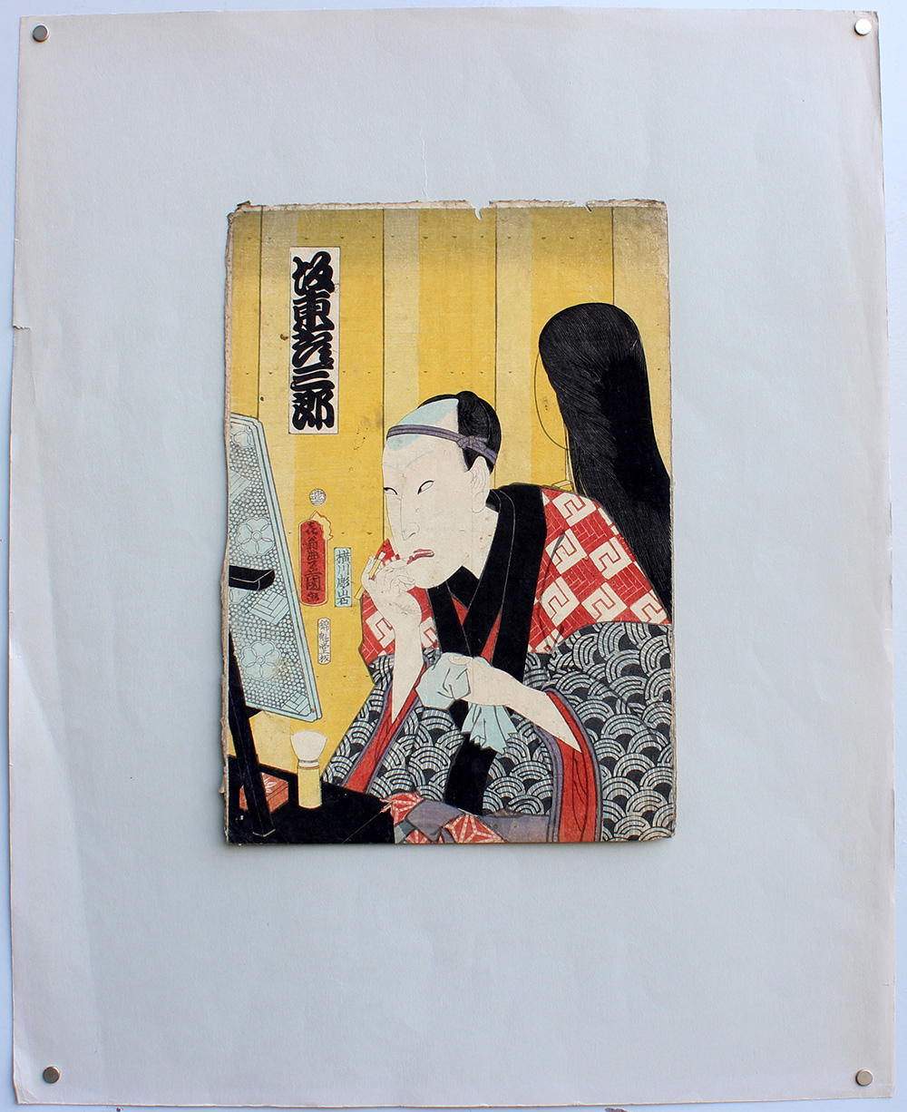 Gruppo di otto xilografie ed un trittico a colori raffiguranti attori,...