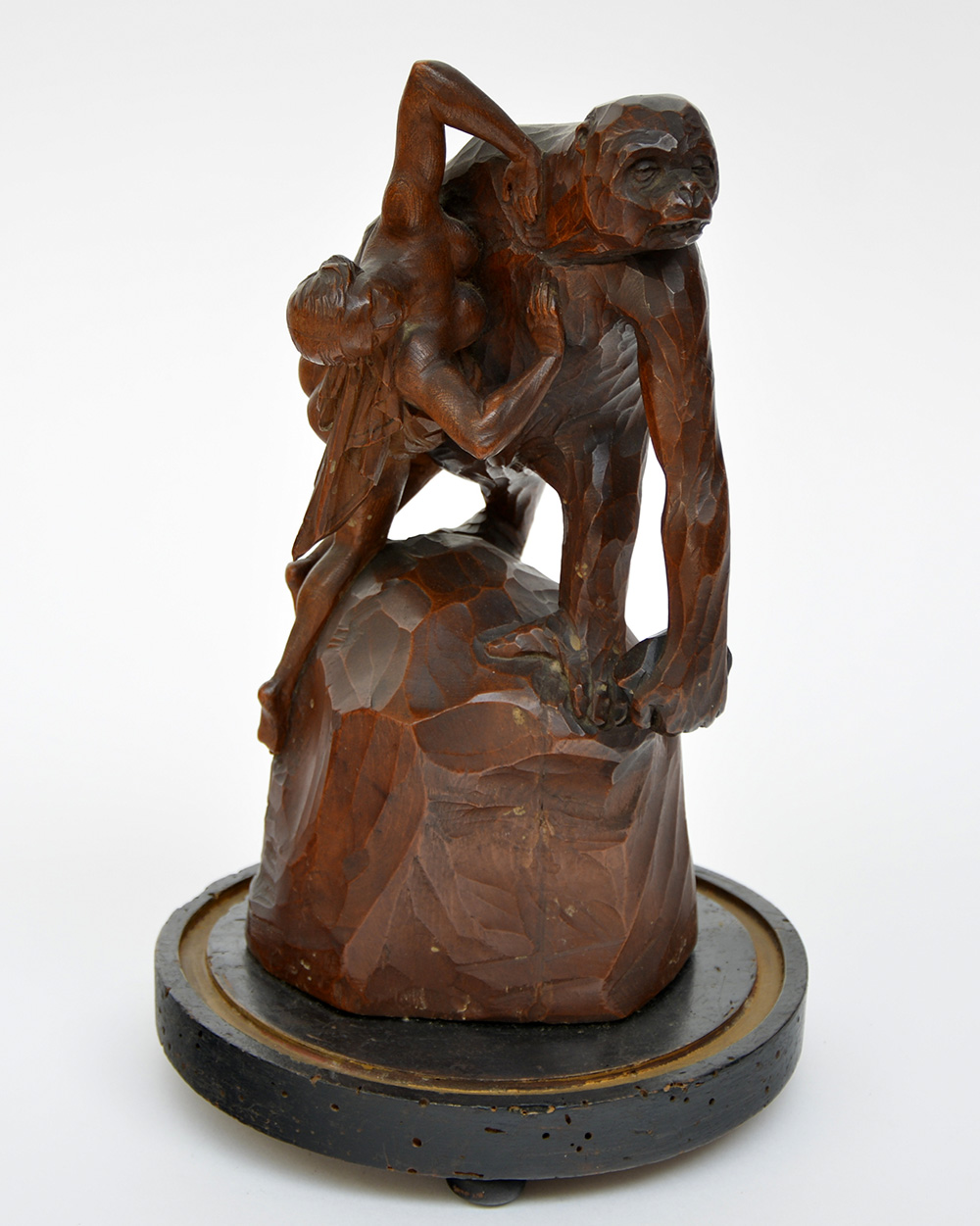 Giulio Angelo Liberali (attr.) Scultura in legno raffigurante donna rapita da un gorilla (h. cm 27) Su base non pertinente