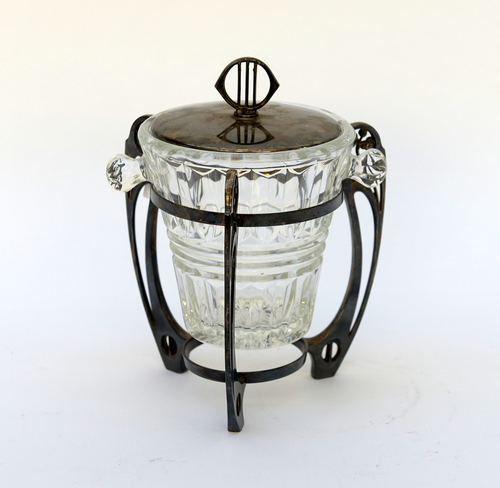 Portaghiaccio di gusto Liberty con struttura in metallo argentato e contenitore in cristallo sfaccettato (h cm 21)