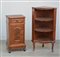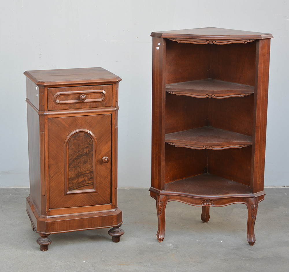 Lotto composto da un comodino umbertino e un'angoliera con fronte mossa a tre ripiani (difetti)