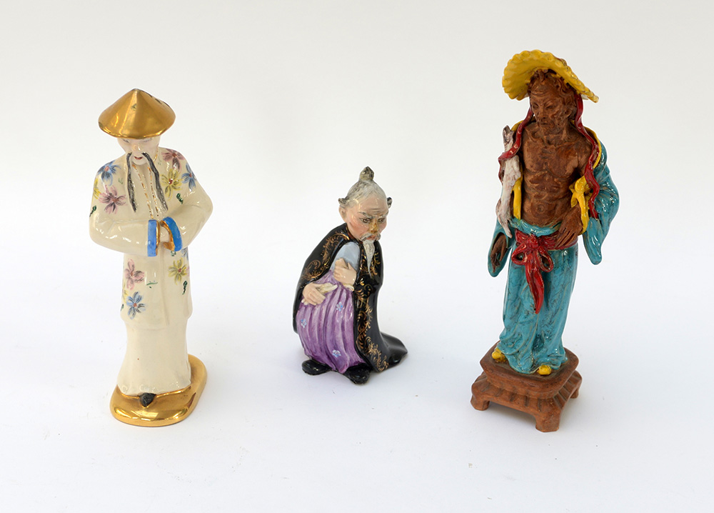 Manifatture diverse. Tre sculture raffiguranti personaggi, due orientali...