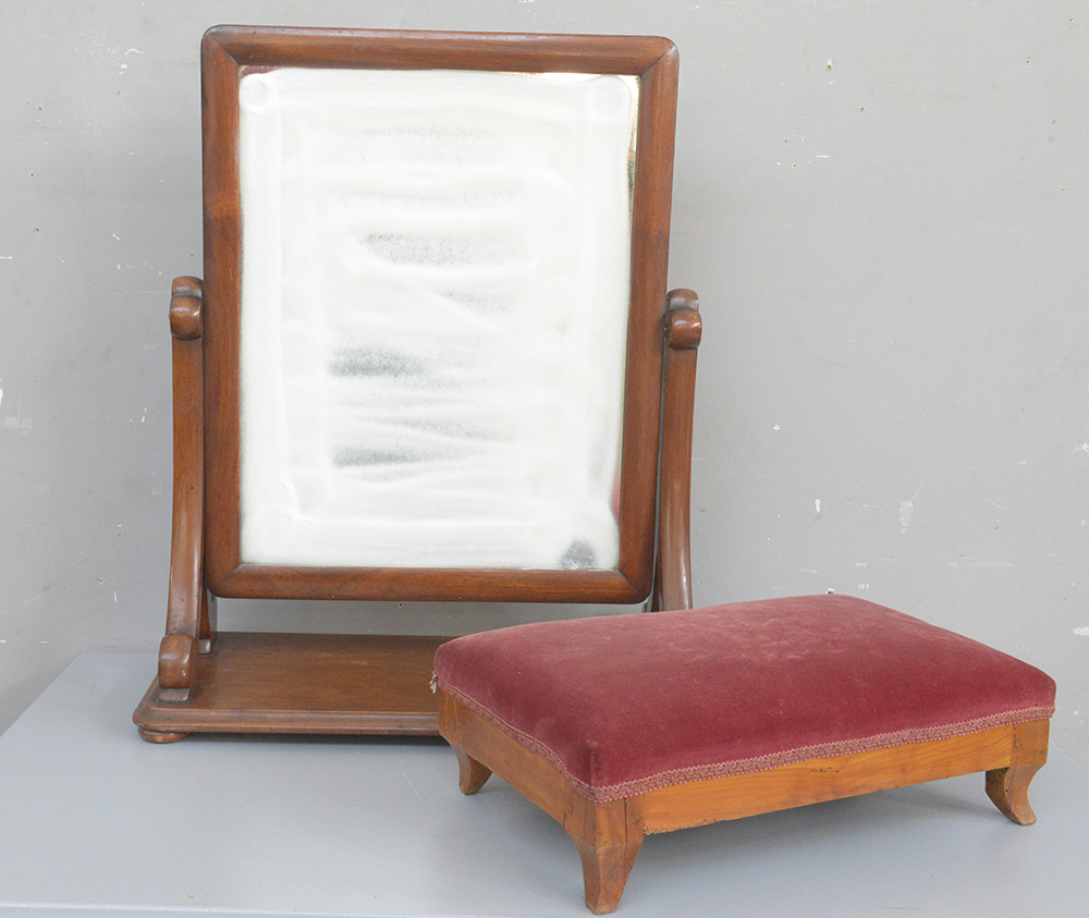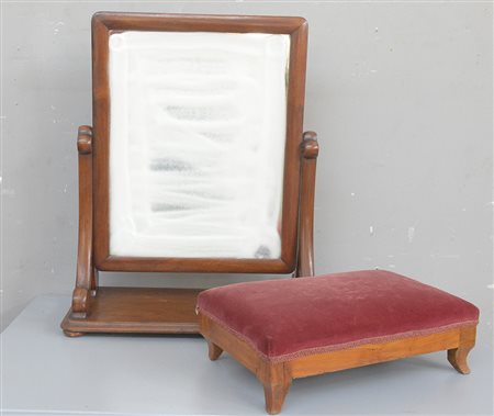 Lotto composto da una psiche ed un poggiapiedi rivestito in velluto rosa, misure differenti (lievi difetti)
