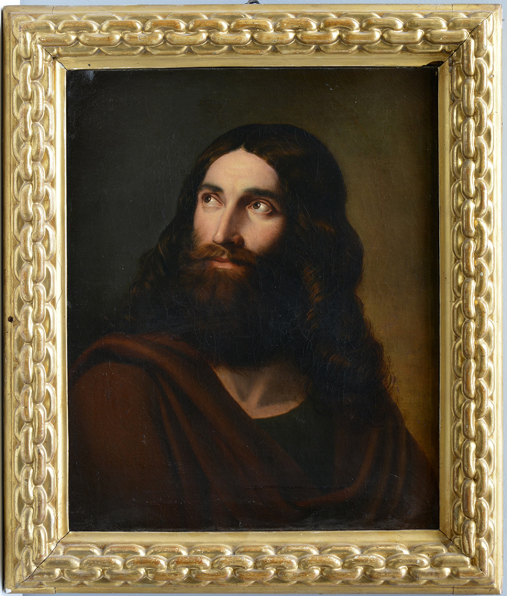 Scuola della fine del secolo XVIII-inizi XIX "Volto di profeta" olio su tela (cm 63x50) in cornice del secolo XIX scolpita a forma di catena