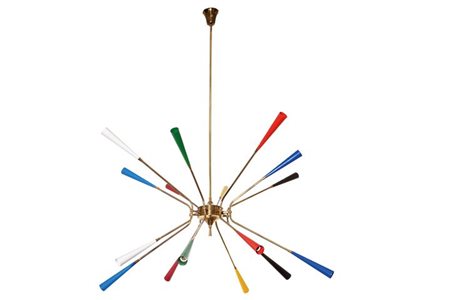 LAMPADARIO Sputnik Lampadario con struttura in ottone zapponato a otto bracci...