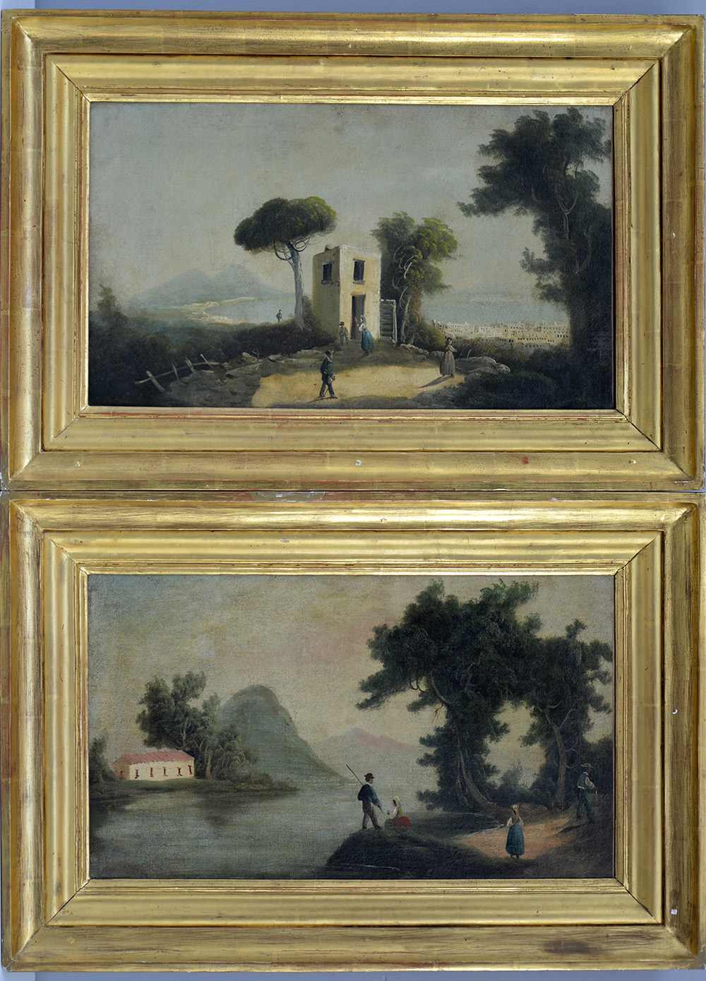 Ignoto, ''Paesaggi'' coppia di dipinti ad olio su tela (cm 33x56) in cornici (difetti e restauri)