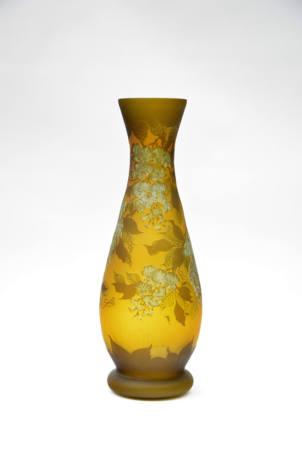 Lotto 3132 | Grande vaso a cammeo in vetro decorato con fiori nei toni del bruno, arancio...
