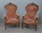Coppia di poltrone con struttura mossa in noce intagliato e imbottitura rivestita in velluto color salmone. Fine secolo XIX (difetti)