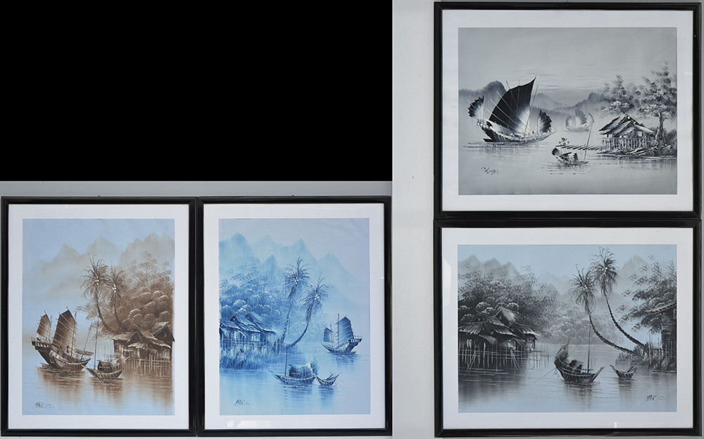 Ignoto "Paesaggi lacustri" lotto di quattro dipinti ad olio, in cornici
