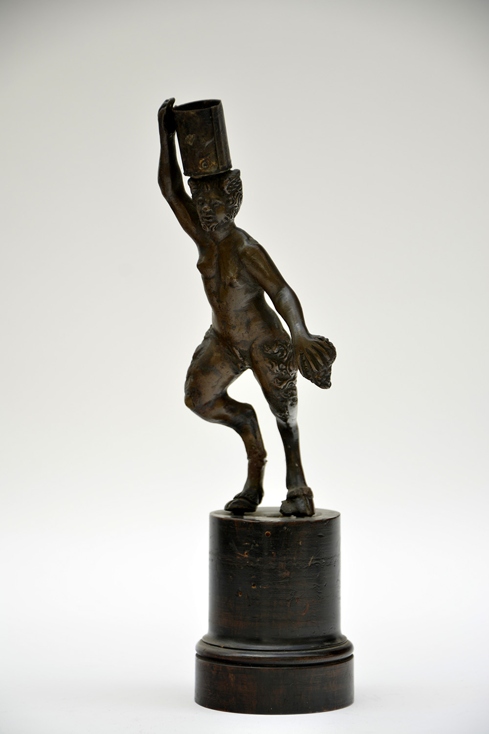 Ignoto "Fauno" antica scultura in bronzo (h. cm 20) Poggiante su base in legno tornito