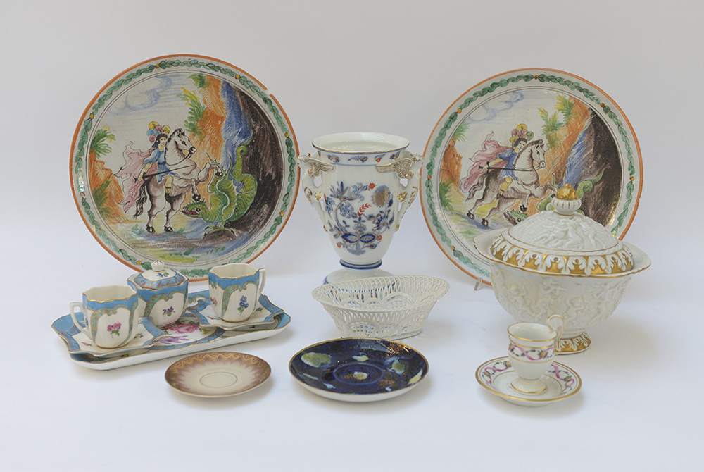 Cartone contenente alcuni oggetti in ceramica per usi differenti (difetti)