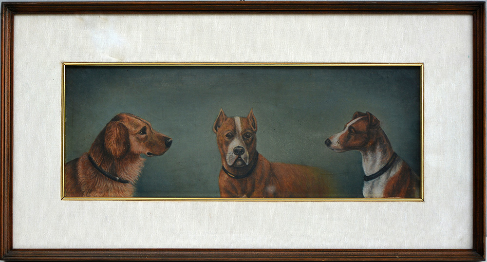 Scuola del secolo XIX "Cani" olio su tela (cm 18x40) In cornice