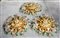Gruppo di tre plafoniere in metallo dorato con decoro a foglie a applicazioni in vetro (d cm 56) (difetti)