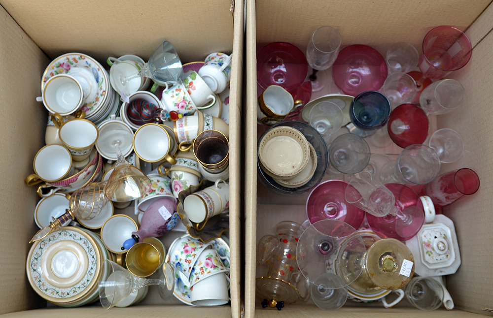 Lotto composto da numerosi oggetti in vetro e ceramica di diverso uso e decoro (difetti)