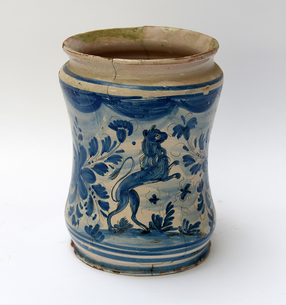Un albarello decorato in monocromia blu (difetti e restauri)