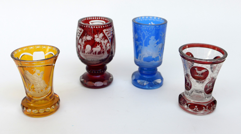 Manifattura di Boemia. Gruppo di quattro bicchieri in vetro (difetti)