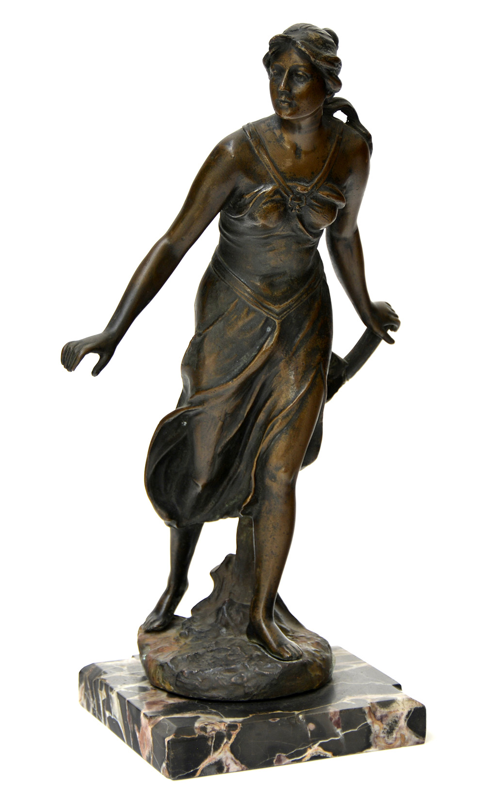 Ignoto "Diana" scultura in bronzo. Fine secolo XIX (h. cm 31) poggiante su base in marmo (difetti)