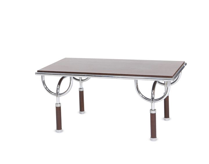Tavolino mod. Tri-13 in metallo cromato e legno di palissandro.