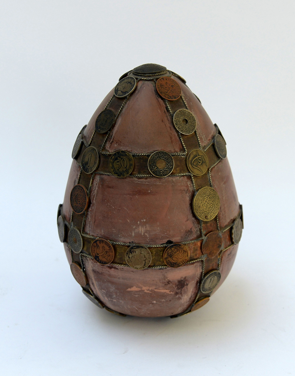 Elemento decorativo a forma di uovo decorato con monete orientali (difetti)