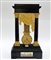 Pendola a due colonne in legno ebanizzato decorata con capitelli e fregi in bronzo dorato, movimento e quadrante sospesi, carica settimanale (cm 33x57x15) (difetti)