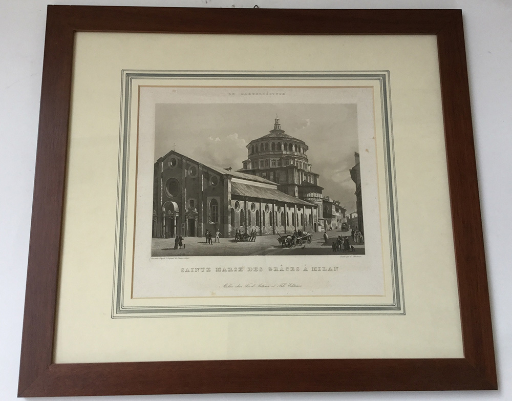Incisione del secolo XIX raffigurante Santa Maria delle Grazie a Milano (cm 22x24,5) (difetti)