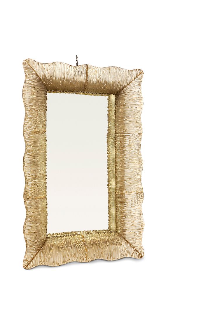 Grande specchiera con cornice composta da elementi in vetro a corteccia leggermente iridati.