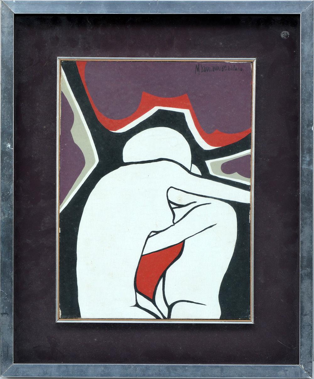 Firma indecifrata, "senza titolo" acrilico su tela (cm 41x30) firmato in alto a destra (lievi difetti)