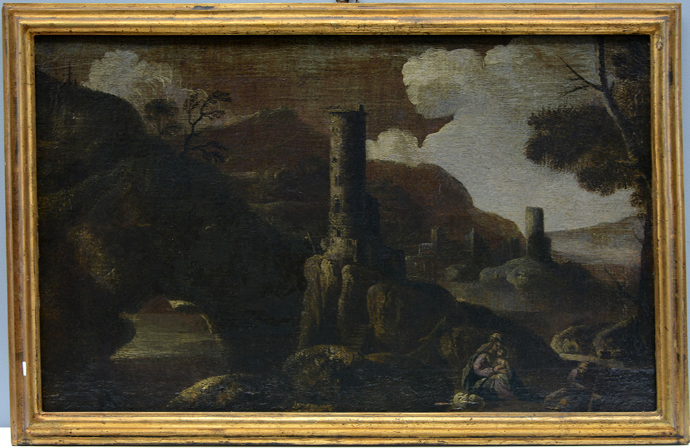 Ignoto "Paesaggio" olio su tela (cm 62,5x100) in cornice (difetti e restauri)